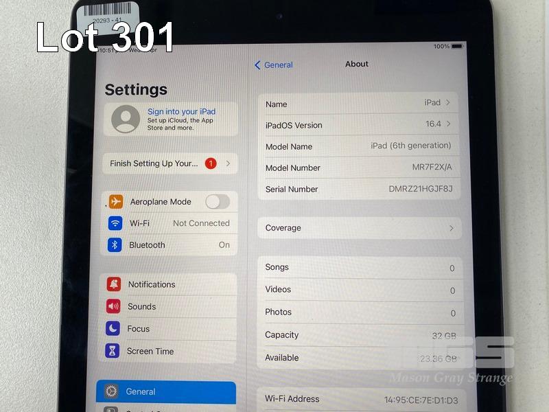 APPLE iPAD (6TH GEN), 32GB, Wi-Fi, SPACE GREY, MODEL A1839, MR7F2X/A (NO CABLE, NO CHARGER) S/N:DMRZ21HGJF8J