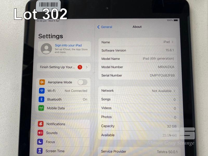 APPLE iPAD (6TH GEN), 32GB, Wi-Fi, CELLULAR, SPACE GREY, MODEL A1954, MR6N2X/A (NO CABLE, NO CHARGER) (NOTE: ENGRAVING ON BACK) S/N:DMPYF26BJF88