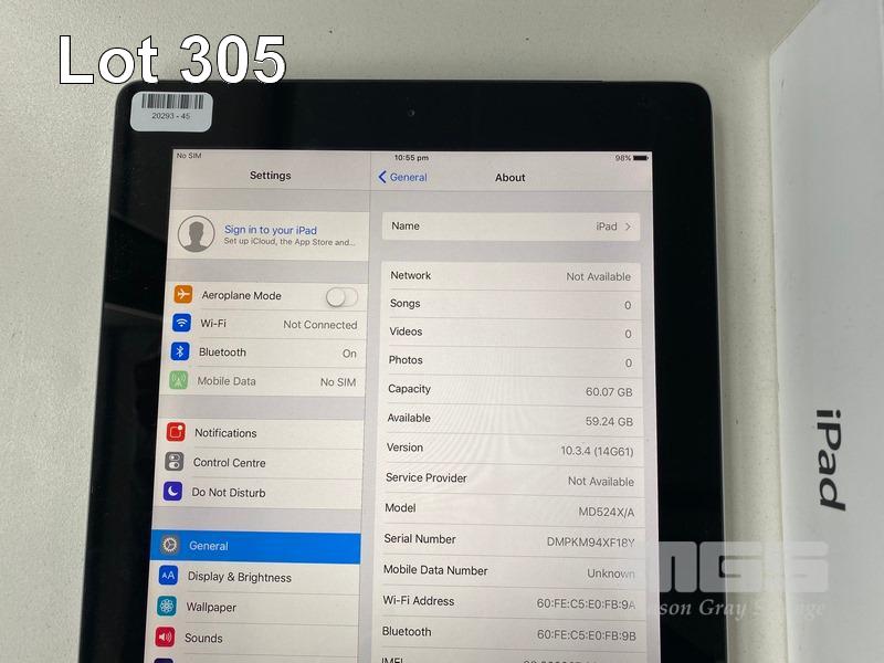 APPLE iPAD (4TH GEN), 64GB, Wi-Fi, CELLULAR, SPACE GREY, MODEL A1460 (NO CHARGER, NO CABLE) S/N:DMPKM94XF18Y