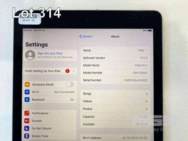 APPLE iPAD AIR 2, 32GB, Wi-Fi, SPACE GREY, MODEL A1566, MNV22X/A (NO CABLE, NO CHARGER) S/N:DMPSYA4FHG5D