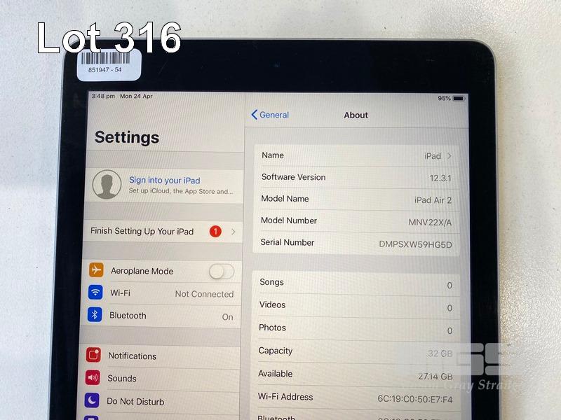 APPLE iPAD AIR 2, 32GB, Wi-Fi, SPACE GREY, MODEL A1566, MNV22X/A (NO CABLE, NO CHARGER) S/N:DMPSXW59HG5D
