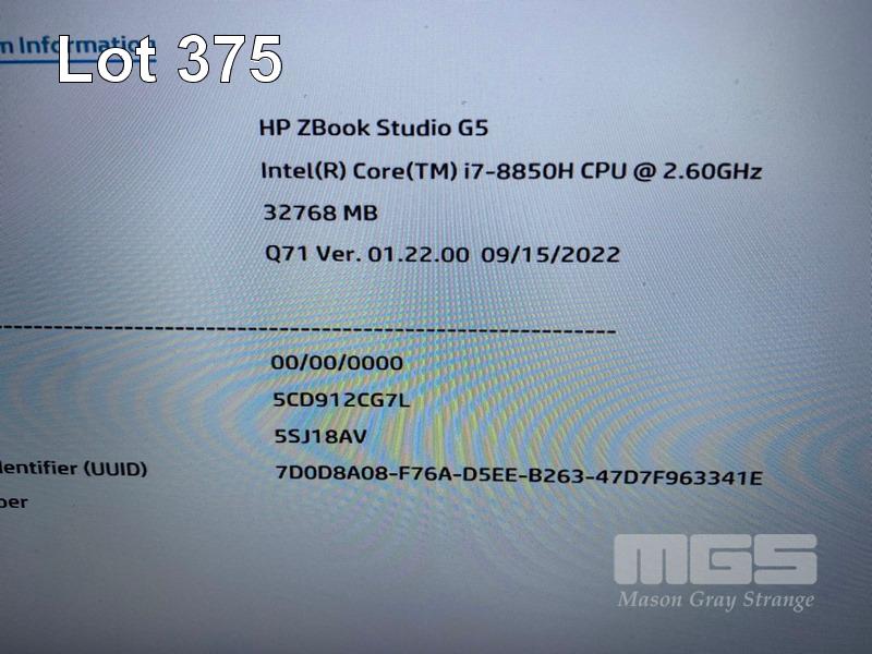 LAPTOP, HP ZBOOK STUDIO G5 MOBILE WORKSTATION (5SJ18AV), CORE i7 8850H (8TH GEN) @ 2.6GHz, 32GB DDR4 RAM, 512GB NVMe M.2 SSD, 15.6" WIDESCREEN (1920x1080), 4GB NVIDIA QUADRO P2000 VIDEO, Wi-Fi, BLUETOOTH, WINDOWS 11 PRO INSTALLED & POWER SUPPLY S/N:5CD912CG7L