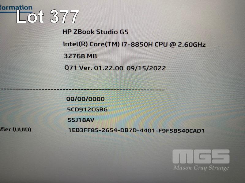 LAPTOP, HP ZBOOK STUDIO G5 MOBILE WORKSTATION (5SJ18AV), CORE i7 8850H (8TH GEN) @ 2.6GHz, 32GB DDR4 RAM, 512GB NVMe M.2 SSD, 15.6" WIDESCREEN (1920x1080), 4GB NVIDIA QUADRO P2000 VIDEO, Wi-Fi, BLUETOOTH, WINDOWS 11 PRO INSTALLED & POWER SUPPLY S/N:5CD912CGBG