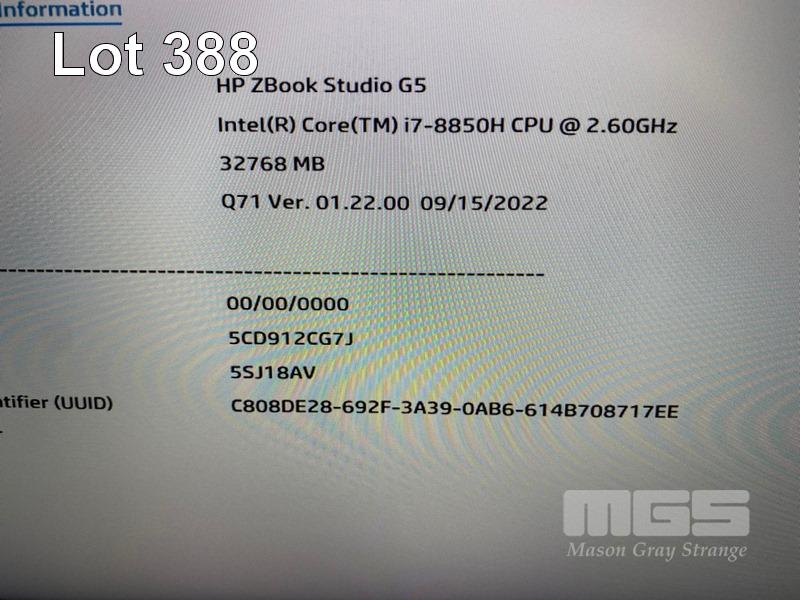 LAPTOP, HP ZBOOK STUDIO G5 MOBILE WORKSTATION (5SJ18AV), CORE i7 8850H (8TH GEN) @ 2.6GHz, 32GB DDR4 RAM, 512GB NVMe M.2 SSD, 15.6" WIDESCREEN (1920x1080), 4GB NVIDIA QUADRO P2000 VIDEO, Wi-Fi, BLUETOOTH, WINDOWS 11 PRO INSTALLED & POWER SUPPLY S/N:5CD912CG7J