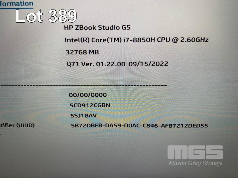 LAPTOP, HP ZBOOK STUDIO G5 MOBILE WORKSTATION (5SJ18AV), CORE i7 8850H (8TH GEN) @ 2.6GHz, 32GB DDR4 RAM, 512GB NVMe M.2 SSD, 15.6" WIDESCREEN (1920x1080), 4GB NVIDIA QUADRO P2000 VIDEO, Wi-Fi, BLUETOOTH, WINDOWS 11 PRO INSTALLED & POWER SUPPLY S/N:5CD912CGBN