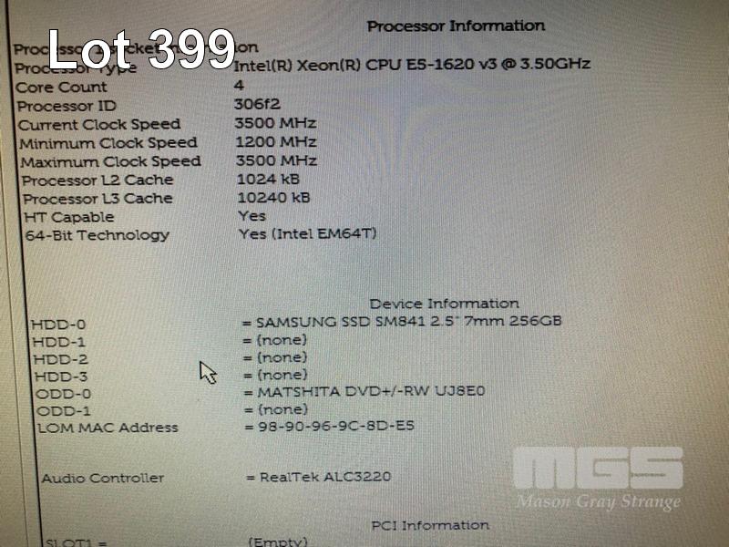 MIDI-TOWER PC, DELL PRECISION TOWER 5810 WORKSTATION, XEON E5-1620 v3 @ 3.5GHz, 8GB DDR4 ECC RDIMM RAM, 256GB SSD, DVD-RW, 4GB NVIDIA QUADRO K2200 VIDEO, WINDOWS 10 PRO INSTALLED (NO KEYBOARD, NO MOUSE) S/N:JPPFH32