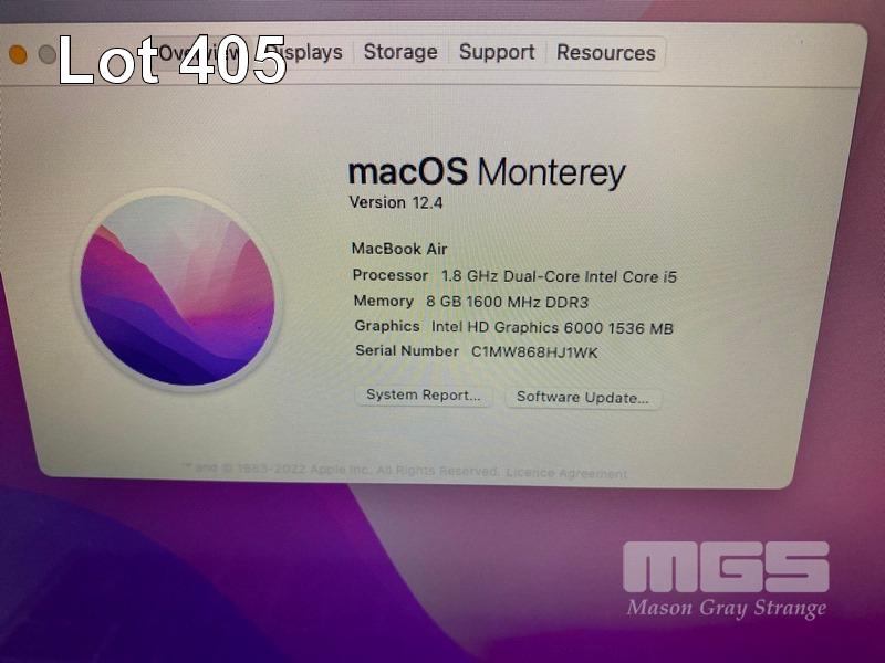 LAPTOP, APPLE MACBOOK AIR (A1466), CORE i5 5350U (5TH GEN) @ 1.8GHz, 8GB DDR3 RAM, 128GB SSD, 13.3" WIDESCREEN (1440x900), INTEL HD GRAPHICS 6000, Wi-Fi, BLUETOOTH, MAC OS 12 INSTALLED & POWER SUPPLY S/N:C1MW868HJ1WK