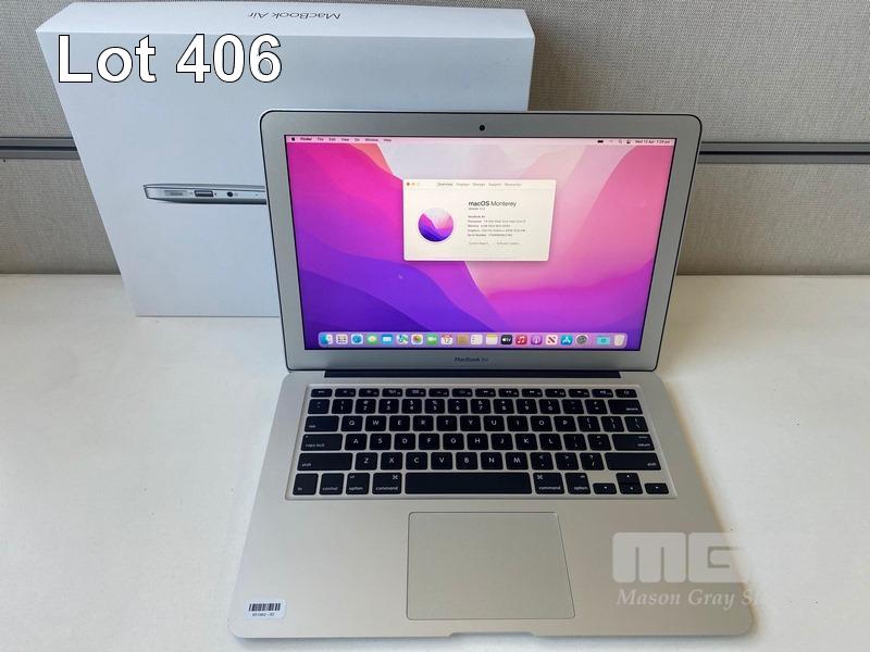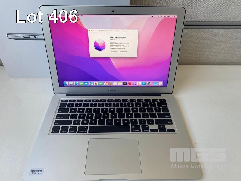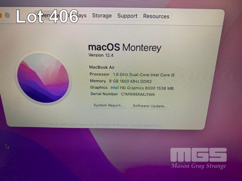 LAPTOP, APPLE MACBOOK AIR (A1466), CORE i5 5350U (5TH GEN) @ 1.8GHz, 8GB DDR3 RAM, 128GB SSD, 13.3" WIDESCREEN (1440x900), INTEL HD GRAPHICS 6000, Wi-Fi, BLUETOOTH, MAC OS 12 INSTALLED & POWER SUPPLY S/N:C1MW86NMJ1WK
