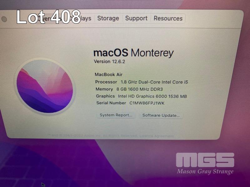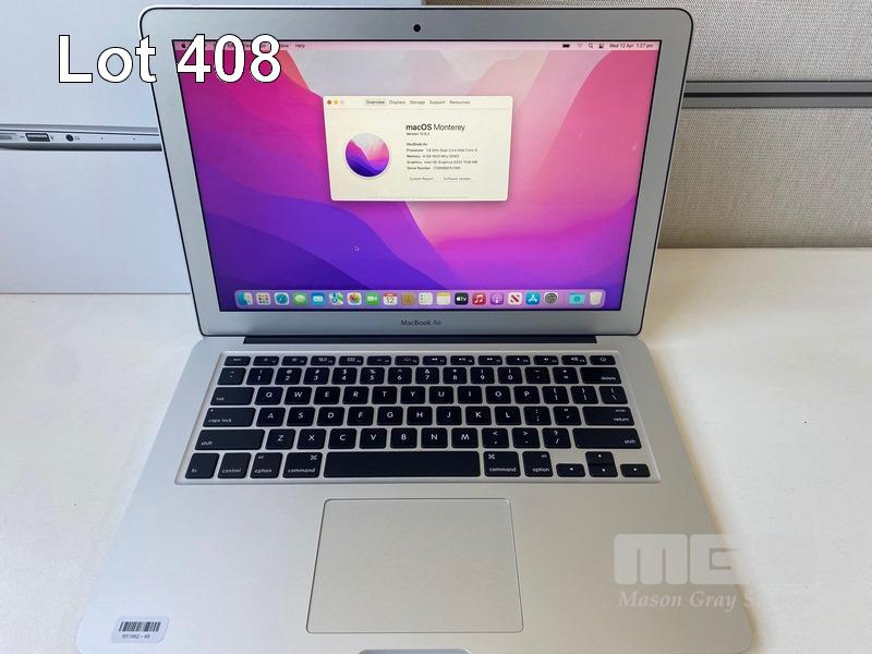 LAPTOP, APPLE MACBOOK AIR (A1466), CORE i5 5350U (5TH GEN) @ 1.8GHz, 8GB DDR3 RAM, 128GB SSD, 13.3" WIDESCREEN (1440x900), INTEL HD GRAPHICS 6000, Wi-Fi, BLUETOOTH, MAC OS 12 INSTALLED & POWER SUPPLY S/N:C1MW86FPJ1WK