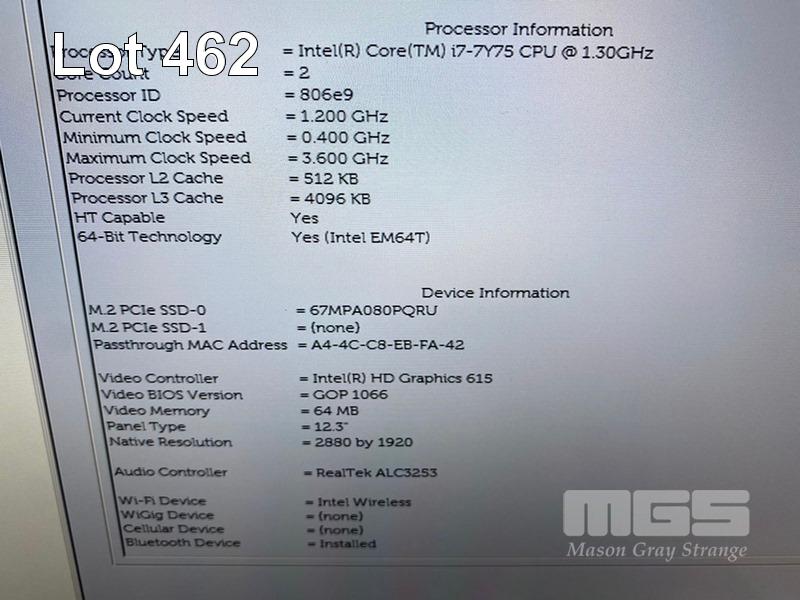 TABLET PC, DELL LATITUDE 7285, CORE i7 7Y75 (7TH GEN) @ 1.3GHz, 16GB DDR3 RAM, 512GB NVMe M.2 SSD, 12.3" TOUCHSCREEN (2880x1920), INTEL HD GRAPHICS 615, Wi-Fi, BLUETOOTH, WINDOWS 10 PRO INSTALLED, KEYBOARD, STYLUS & USB-C POWER SUPPLY S/N:BFJ6PH2