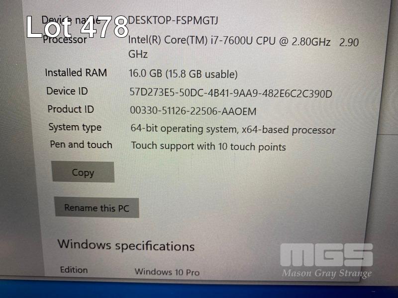 LAPTOP, LENOVO THINKPAD T470s, TYPE 20HG, CORE i7 7600U (7TH GEN) @ 2.8GHz, 16GB DDR4 RAM, 500GB NVMe M.2 SSD, 14" TOUCHSCREEN (1920x1080), INTEL HD VIDEO, Wi-Fi, BLUETOOTH, WINDOWS 10 PRO INSTALLED & POWER SUPPLY (NOTE: TOUCHPAD WORN, MINOR MARKS ON SCREEN) S/N:PC0UKUGD
