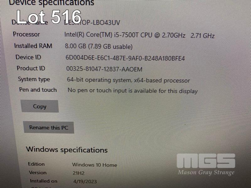 TINY-IN-ONE PC, LENOVO THINKCENTRE M710q, CORE i5 7500T (7TH GEN) @ 2.7GHz, 8GB DDR4 RAM, 256GB SSD, TIO24Gen3 23.8" LED-BL LCD WIDESCREEN, WEBCAM, Wi-Fi, WINDOWS 10 HOME INSTALLED & POWER SUPPLY (NO KEYBOARD, NO MOUSE) S/N:PC0SCU4S