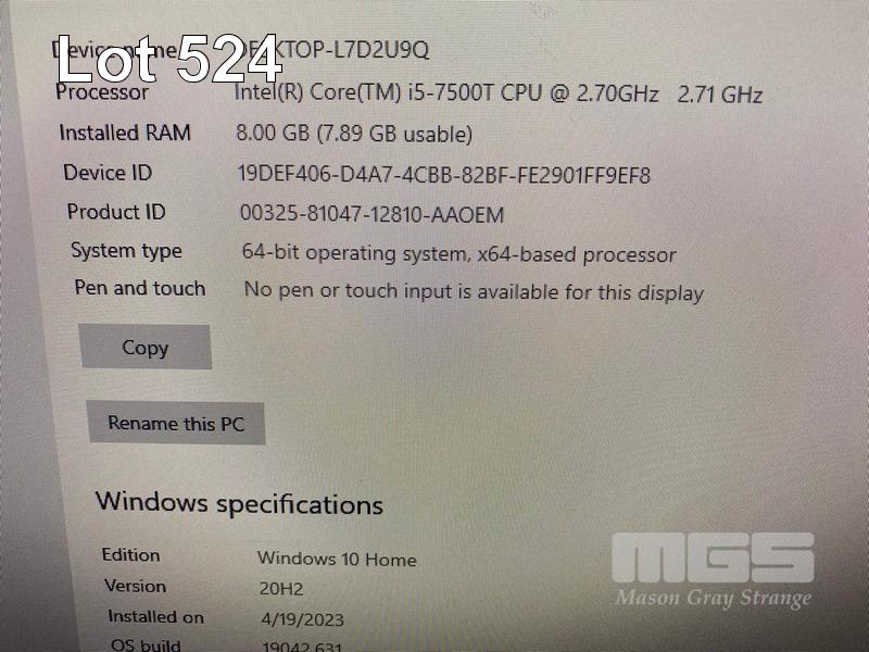 TINY-IN-ONE PC, LENOVO THINKCENTRE M710q, CORE i5 7500T (7TH GEN) @ 2.7GHz, 8GB DDR4 RAM, 256GB SSD, TIO24Gen3 23.8" LED-BL LCD WIDESCREEN, WEBCAM, Wi-Fi, WINDOWS 10 HOME INSTALLED & POWER SUPPLY (NO KEYBOARD, NO MOUSE) S/N:PC0SCU3Z