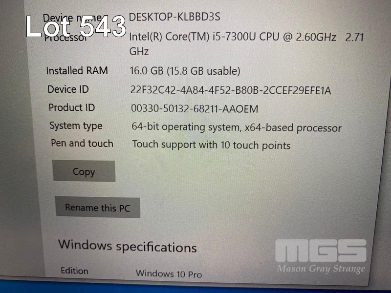 LAPTOP, LENOVO THINKPAD T470s, TYPE 20HG, CORE i5 7300U (7TH GEN) @ 2.6GHz, 16GB DDR4 RAM, 256GB NVMe M.2 SSD, 14" TOUCHSCREEN (1920x1080), INTEL HD VIDEO, Wi-Fi, BLUETOOTH, WINDOWS 10 PRO INSTALLED & POWER SUPPLY (NOTE: MINOR MARKS ON SCREEN) S/N:PC0SS7RJ