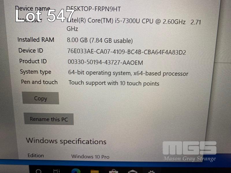 LAPTOP, LENOVO THINKPAD T470s, TYPE 20HG, CORE i5 7300U (7TH GEN) @ 2.6GHz, 8GB DDR4 RAM, 256GB NVMe M.2 SSD, 14" TOUCHSCREEN (1920x1080), INTEL HD VIDEO, Wi-Fi, BLUETOOTH, WINDOWS 10 PRO INSTALLED & POWER SUPPLY (NOTE: MINOR MARKS ON SCREEN) S/N:PC0TAJSQ