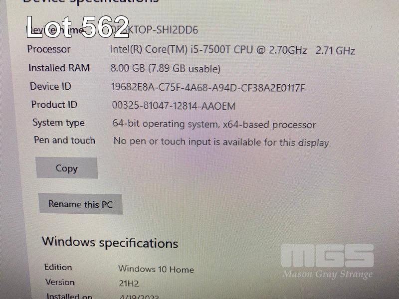 TINY-IN-ONE PC, LENOVO THINKCENTRE M710q, CORE i5 7500T (7TH GEN) @ 2.7GHz, 8GB DDR4 RAM, 256GB SSD, TIO24Gen3 23.8" LED-BL LCD WIDESCREEN, WEBCAM, Wi-Fi, WINDOWS 10 HOME INSTALLED & POWER SUPPLY (NO KEYBOARD, NO MOUSE) (NOTE: MINOR SCRATCHES ON SCREEN) S/N:PC0SCU43