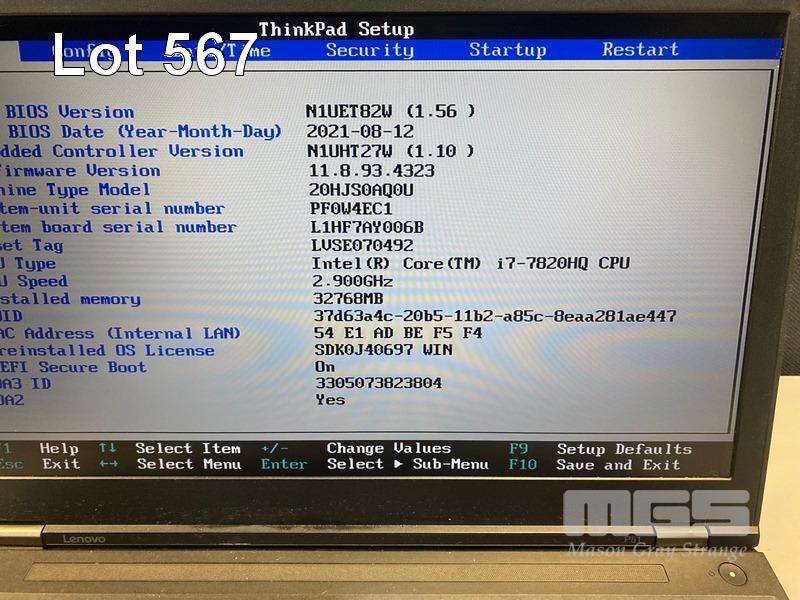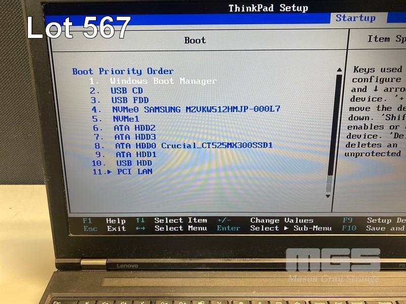 LAPTOP, LENOVO THINKPAD P51 MOBILE WORKSTATION, TYPE 20HJ, CORE i7 7820HQ (7TH GEN) @ 2.9GHz, 32GB DDR4 RAM, 512GB NVMe M.2 SSD, 525GB SSD, 15.6" WIDESCREEN (1920x1080), 4GB NVIDIA QUADRO M2200 VIDEO, Wi-Fi, BLUETOOTH, WINDOWS 10 PRO INSTALLED (NO POWER SUPPLY) (NOTE: MARKS ON SCREEN) S/N:PF0W4EC1