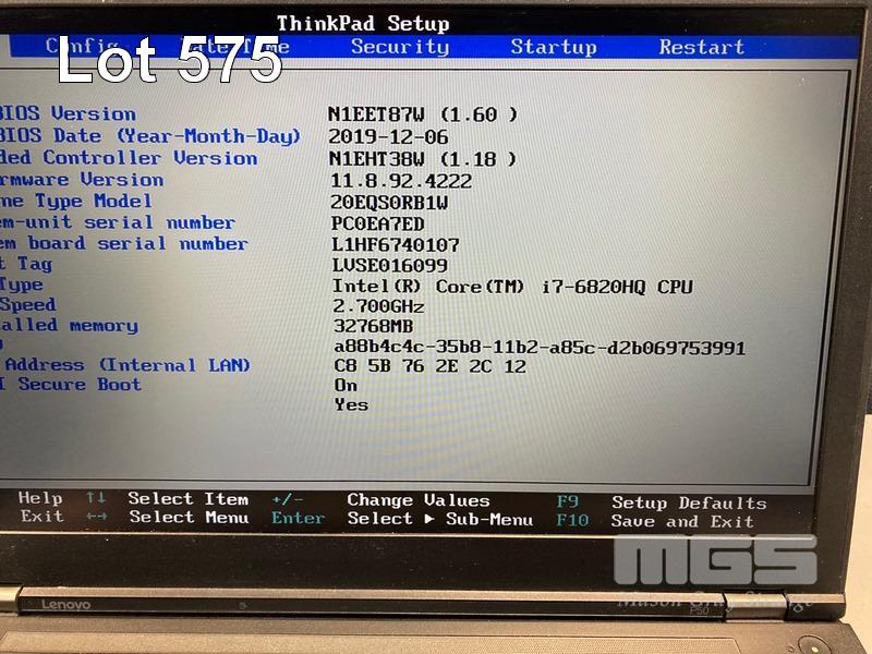 LAPTOP, LENOVO THINKPAD P50 MOBILE WORKSTATION, TYPE 20EQ, CORE i7 6820HQ (6TH GEN) @ 2.7GHz, 32GB DDR4 RAM, 512GB NVMe M.2 SSD, 15.6" WIDESCREEN (1920x1080), 4GB NVIDIA QUADRO M2000M VIDEO, Wi-Fi, BLUETOOTH, WINDOWS 10 PRO INSTALLED (NO POWER SUPPLY) (NOTE: MINOR MARKS ON SCREEN) S/N:PC0EA7ED