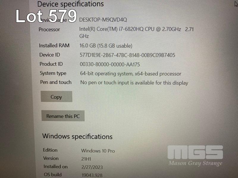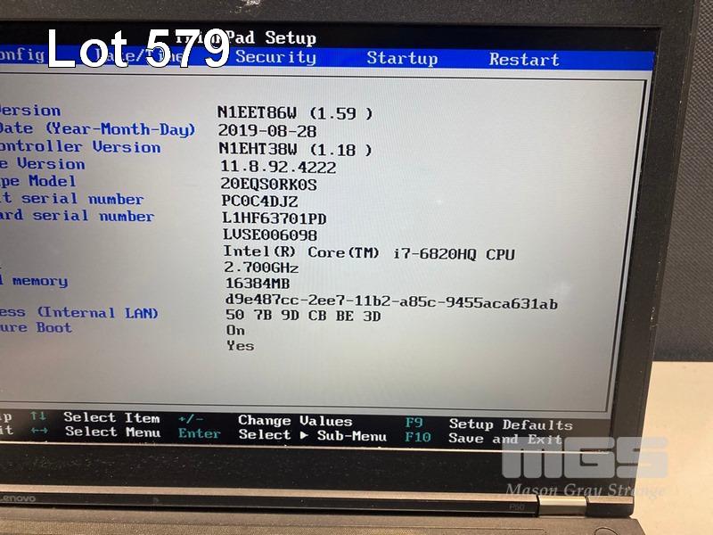 LAPTOP, LENOVO THINKPAD P50 MOBILE WORKSTATION, TYPE 20EQ, CORE i7 6820HQ (6TH GEN) @ 2.7GHz, 16GB DDR4 RAM, 256GB M.2 SSD, 15.6" WIDESCREEN (1920x1080), 4GB NVIDIA QUADRO M2000M VIDEO, Wi-Fi, BLUETOOTH, WINDOWS 10 PRO INSTALLED (NO POWER SUPPLY) (NOTE: WHITE SPOT SCREEN BLEMISH, MINOR MARKS ON SCREEN) S/N:PC0C4DJZ