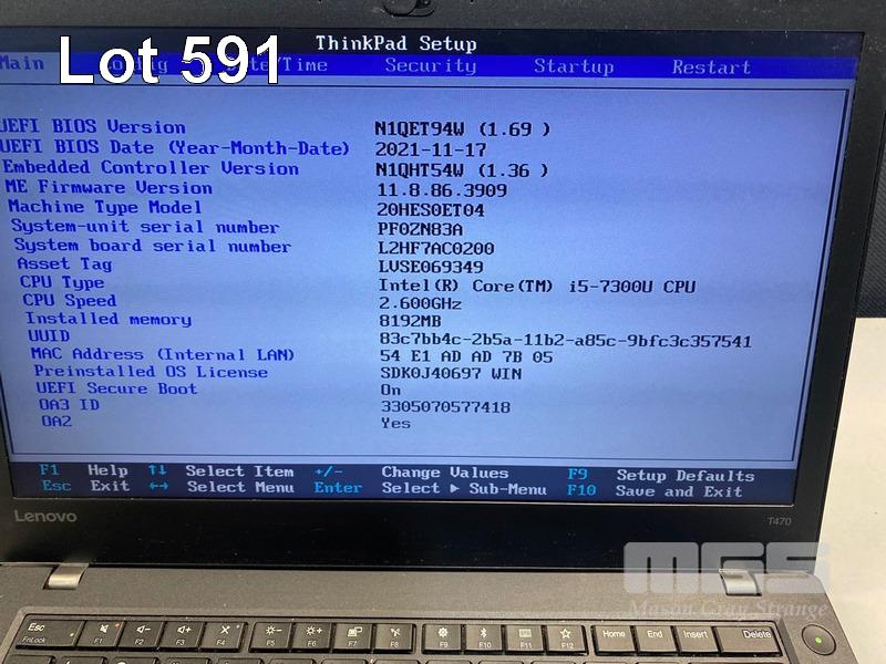 LAPTOP, LENOVO THINKPAD T470, TYPE 20HE, CORE i5 7300U (7TH GEN) @ 2.6GHz, 8GB DDR4 RAM, 256GB NVMe M.2 SSD, 14" WIDESCREEN (1366x768), INTEL HD VIDEO, Wi-Fi, BLUETOOTH, WINDOWS 10 PRO INSTALLED & POWER SUPPLY (NOTE: MINOR MARKS ON SCREEN) S/N:PF0ZN83A
