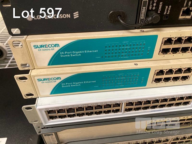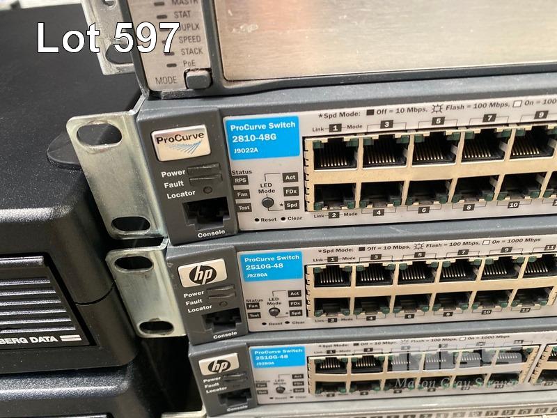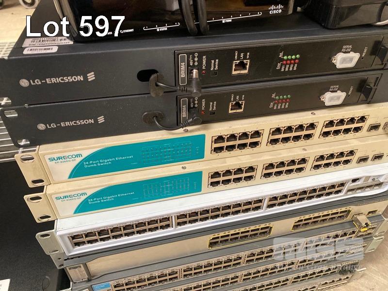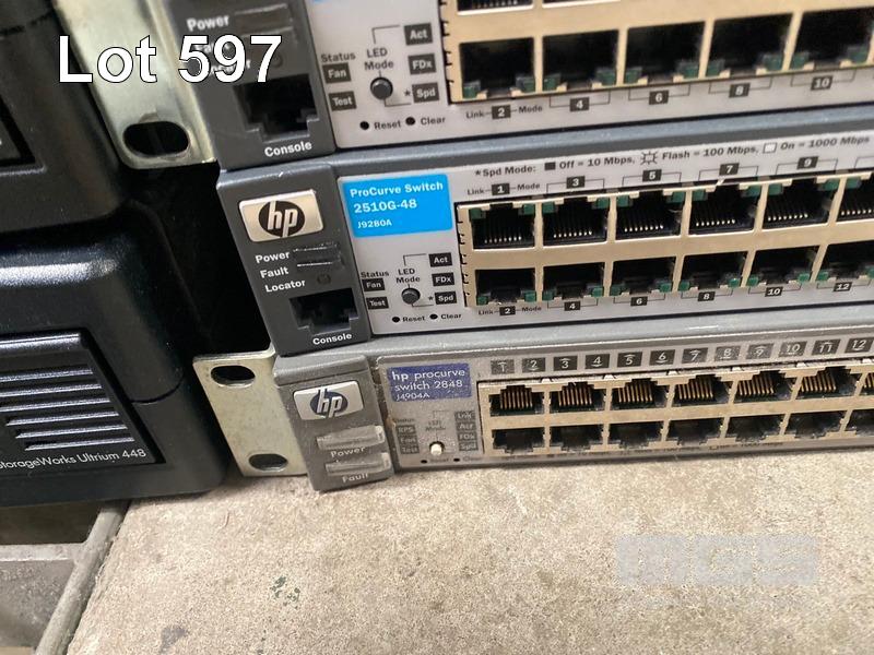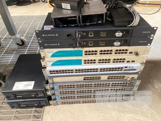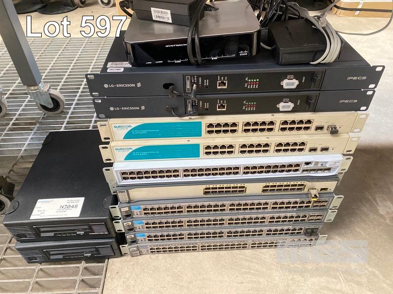 1 x CISCO VOIP 8-PORT TELEPHONY GATEWAY, 1 x CISCO ATA WITH ROUTER, 2 x LG-ERICSSON iPECS PHONE SYSTEMS, 2 x SURECOME 24-PORT SWITCHES, 1 x 3COM 48-PORT SWITCH, 1 x CISCO CATALYST 3750 SERIES PoE-24 SWITCH 1 x HP PROCURVE 2810-48G SWITCH, J9022A 2 x HP PROCURVE 2510G-48 SWITCH, J9280A 1 x HP PROCURVE 2848 SWITCH, J4904A 2 x HP STORAGEWORKS LTO2 TAPE DRIVES (NO CABLES)