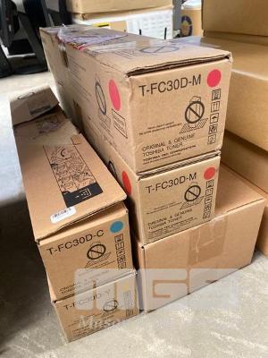 2 x TOSHIBA T-FC30D-M TONER CARTRIDGES, 1 x TOSHIBA T-FC30D-C TONER CARTRIDGE, 1 x TOSHIBA T-FC30D-Y TONER CARTRIDGE, 1 x WASTE TONER BOTTLE