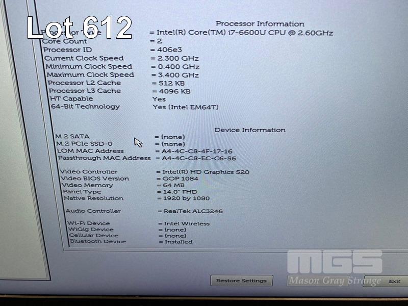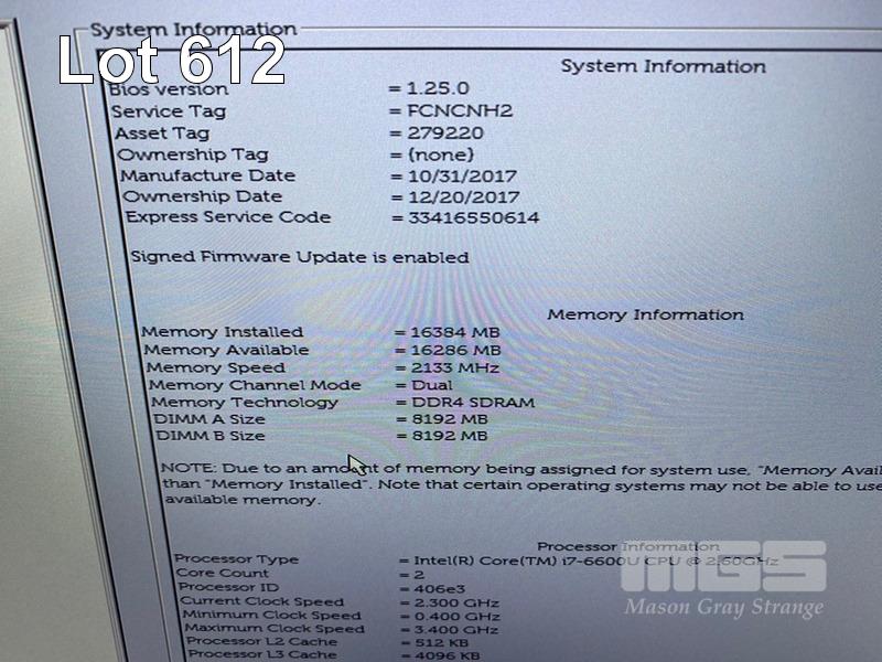 LAPTOP, DELL LATITUDE 7480, CORE i7 6600U (6TH GEN) @ 2.6GHz, 16GB DDR4 RAM, NO HDD (NO POWER SUPPLY) (NOTE: NOT DETECTING BATTERY, KEYBOARD WORN) S/N:FCNCNH2