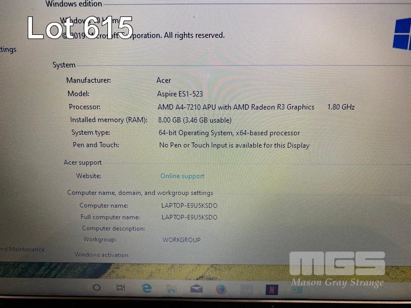 LAPTOP, ACER ASPIRE ES1-523-499J, AMD A4-7210 APU WITH AMD RADEON R3 GRAPHICS @ 1.8GHz, 8GB DDR3 RAM, 500GB SATA HDD, DVD-RW, 15.6" WIDESCREEN, Wi-Fi, BLUETOOTH, WINDOWS 10 HOME INSTALLED & POWER SUPPLY