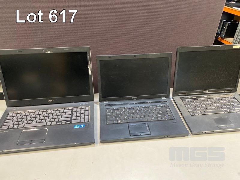 3 x LAPTOPS INC. DELL VOSTRO 3750, CORE i7 2630QM @ 2GHz, 6GB RAM, 750GB HDD (NOTE: BATTERY ERROR) DELL VOSTRO 3500, CORE i5 M450 @ 2.4GHz, 4GB RAM, 320GB HDD DELL VOSTRO 1520, CORE 2 DUO T6670 @ 2.2GHz, 4GB RAM, 160GB HDD (ALL NO POWER SUPPLIES) S/N:JSR50Q1, 3YJD7N1, 3MZ53L1