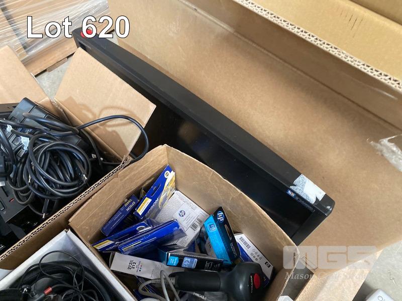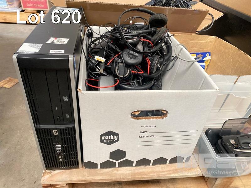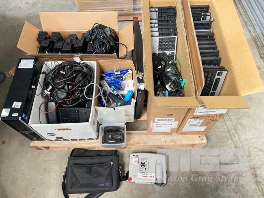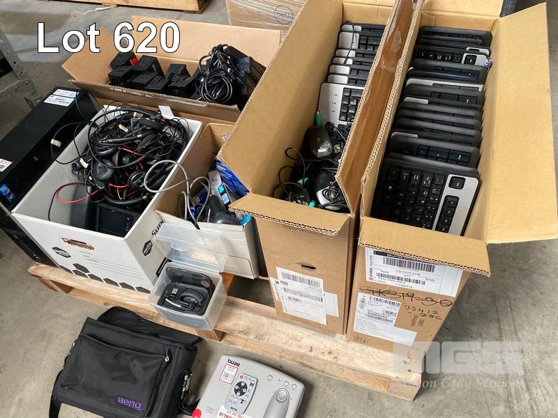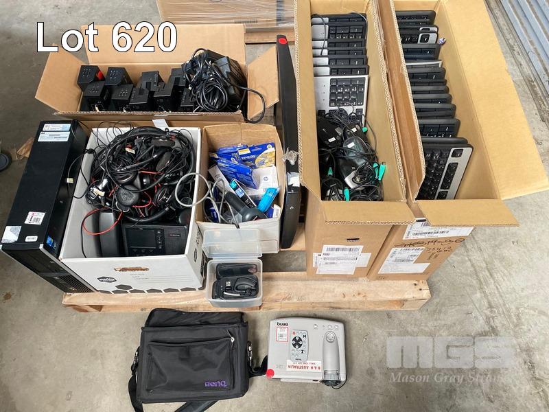 1 x PALLET LOT INC. HP 8000 ELITE SFF PC, CORE 2 DUO E7600 @ 3.06GHz, 4GB RAM, NO HDD, SAMSUNG 22" LCD MONITOR (NO STAND), QTY USB/PS2 KEYBOARDS & MICE, BENGQ PROJECTOR, HEADSETS (SOME DAMAGED), DELL DOCKING STATIONS (NO POWER SUPPLIES), INK CARTRIDGES ETC