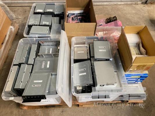 1 x PALLET LOT ASST HARD DRIVE CADDIES, 6602-6500-0500, 6607-7100-0500, EMPTY BLADE FILLERS, ETHERNET MEDIA CONVERTERS, QSFP CABLES, X66000A-R6, FIBRE OPTIC CABLES, ETC