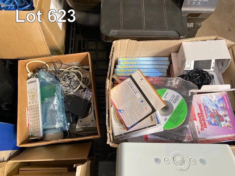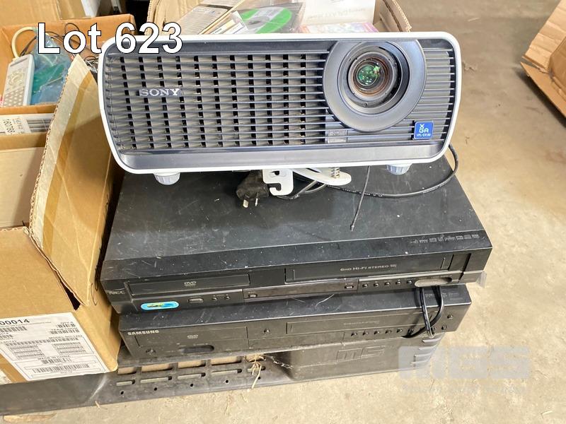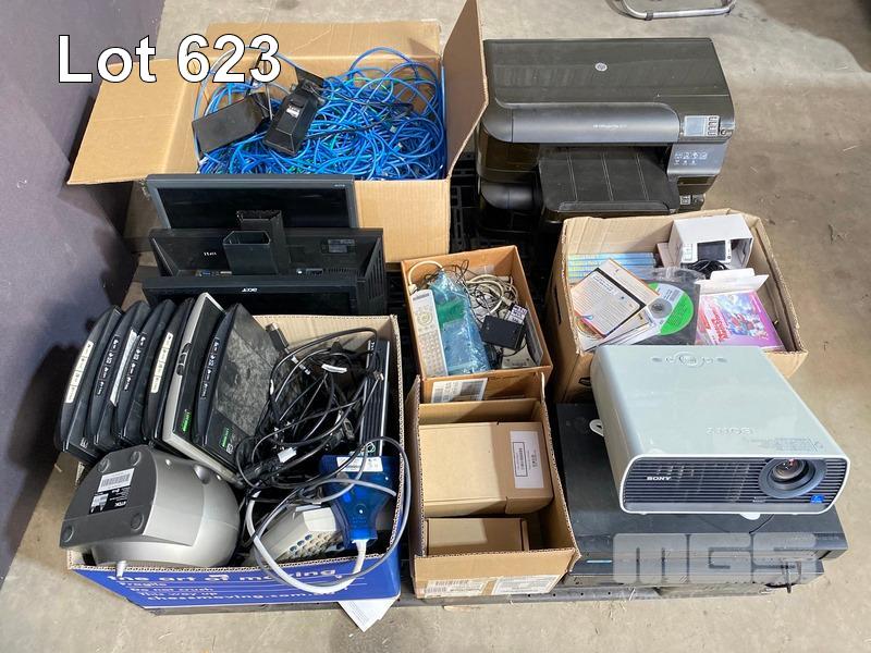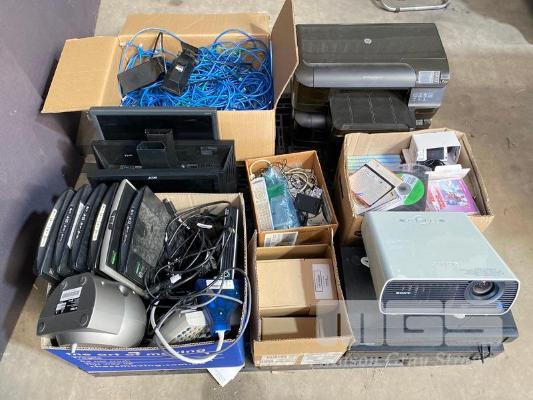 1 x PALLET LOT ASST CANON FLATBED SCANNERS, NETWORK CABLES, PROJECTOR, HP PRINTERS (NO POWER SUPPLIES), DVD/VCR COMBOS (NO REMOTES) ETC