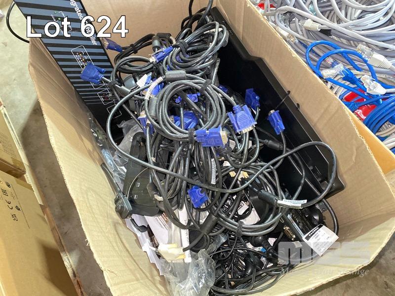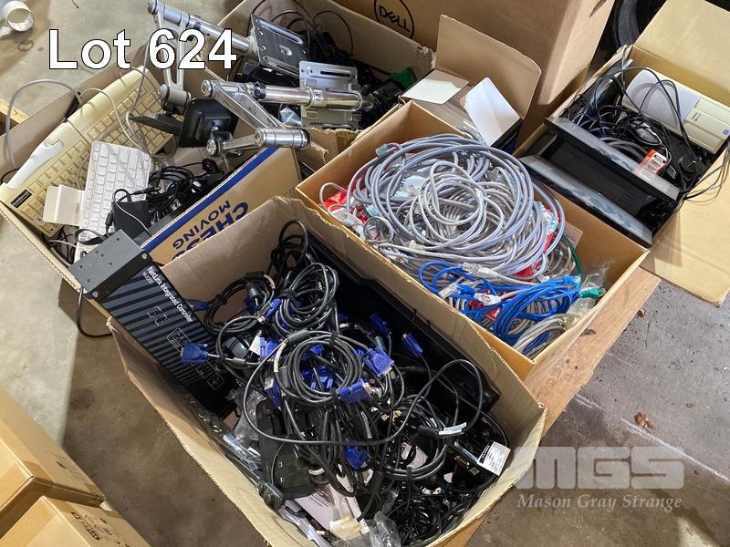 1 x PALLET LOT ASST CABLES, POWER SUPPLIES, CORDLESS KEYBOARDS (NO RECEIVERS), AMX PANELS ETC