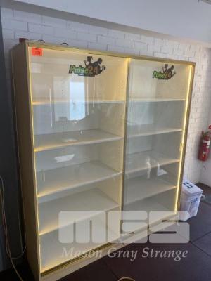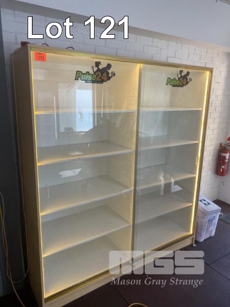 TROPHY CASE, 1800 x 2000 x 550mm, 10 SHELVES, GLASS SLIDING DOORS, ILLUMINATED, LOCKABLE WITH KEY