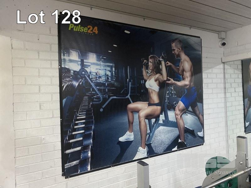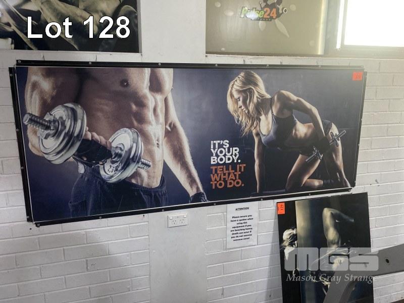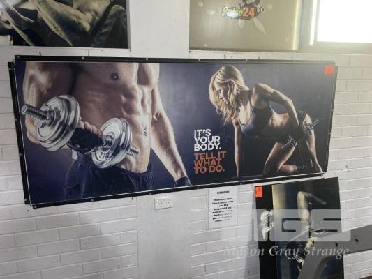 3 x VINYL GYM POSTERS WITH WALL MOUNT FRAMES, 2000 x 800mm, 1700 x 2200mm, 2200 x 3000mm