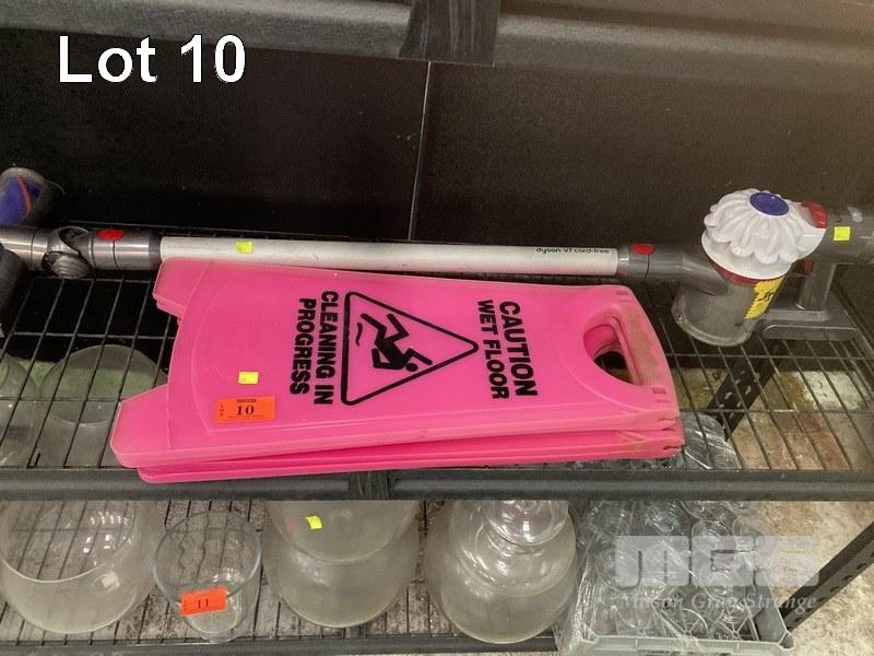 DYSON V7 CORD FREE VACUUM CLEANER, NO CHARGER WITH 2 x "CAUTION WET FLOOR" SIGNS