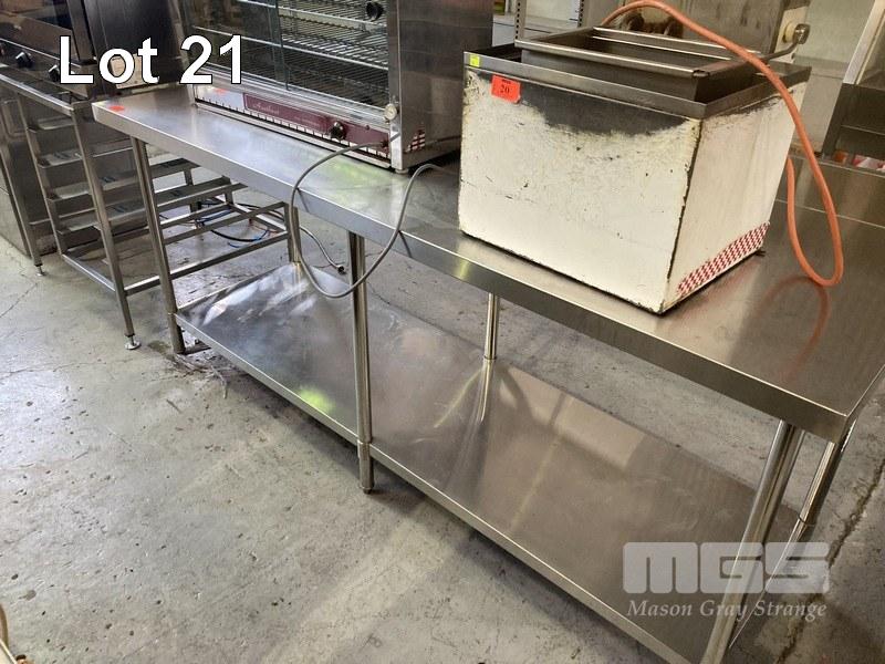 STAINLESS STEEL PREP BENCH, 210 x 70cm, 2 TIER WITH SPLASHBACK