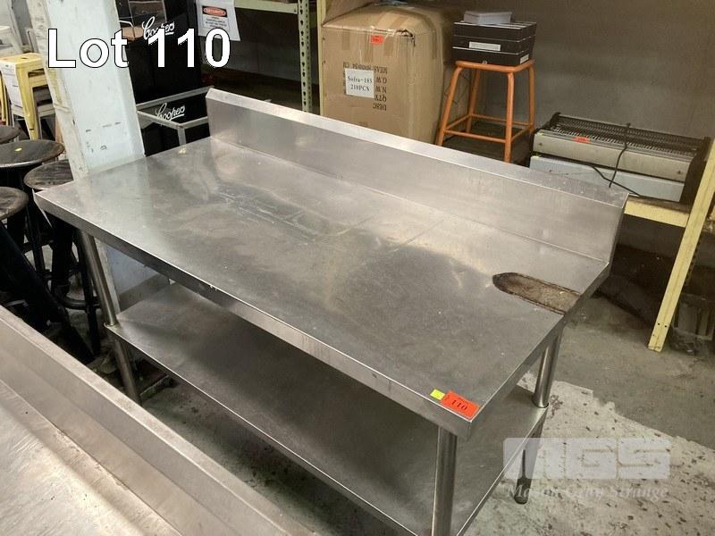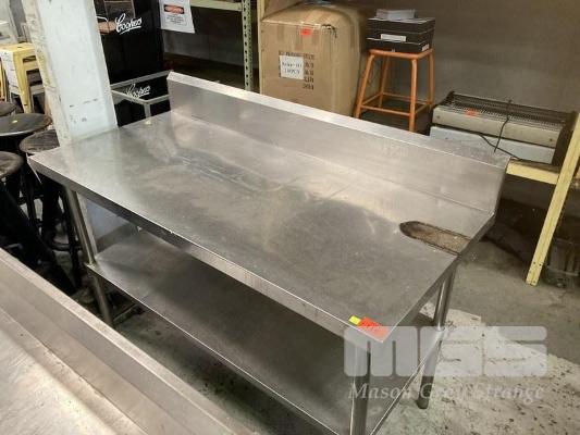 STAINLESS STEEL PREP BENCH, 150 x 70cm, 2 TIER WITH SPLASHBACK