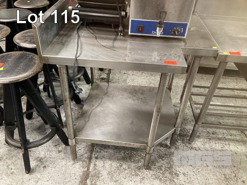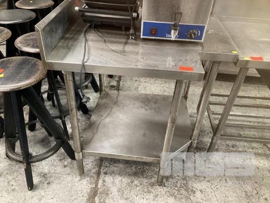 CORNER STAINLESS STEEL BENCH, 90 x 90cm, 2 TIER WITH SPLASHBACK