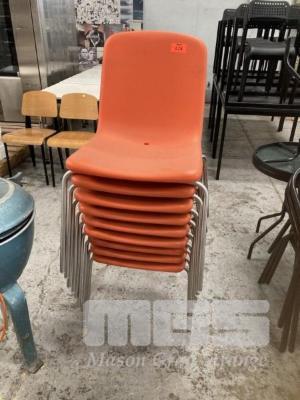 9 x ORANGE PVC OUTDOOR CHAIRS