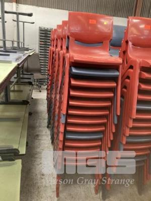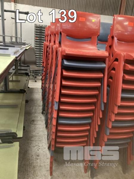 65 x SEBEL PVC STACKING CHAIRS, RED & BLUE