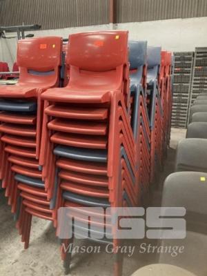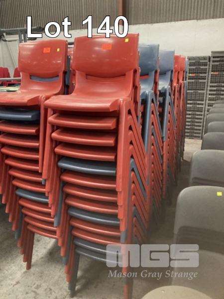 65 x SEBEL PVC STACKING CHAIRS, RED & BLUE