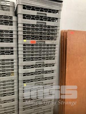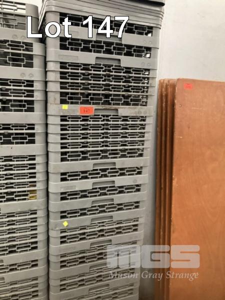 15 X NSF CERTIFIED 25-COMPARTMENT DISHWASHER GLASS TRAYS WITH EXTENDERS. IN GREY. 7 X LIDS. 500 X 500 MM.