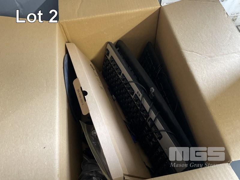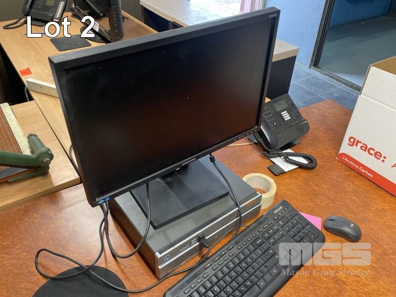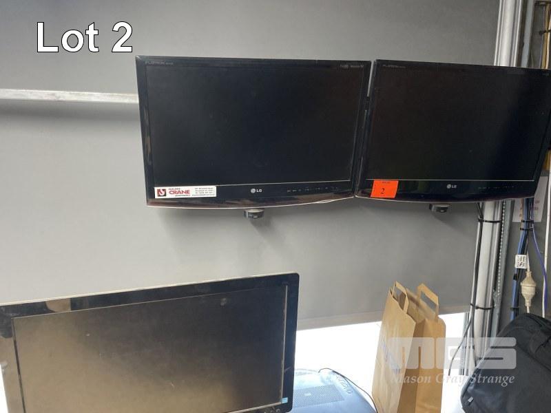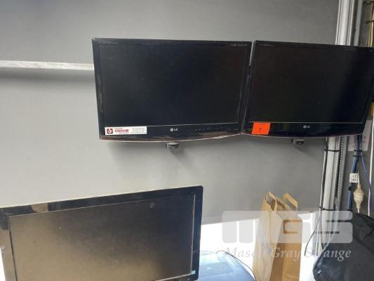 4 x 22" MONITORS & 4 x PC'S, LENOVO WITH CABLES, MICE, KEYBOARDS, ETC
