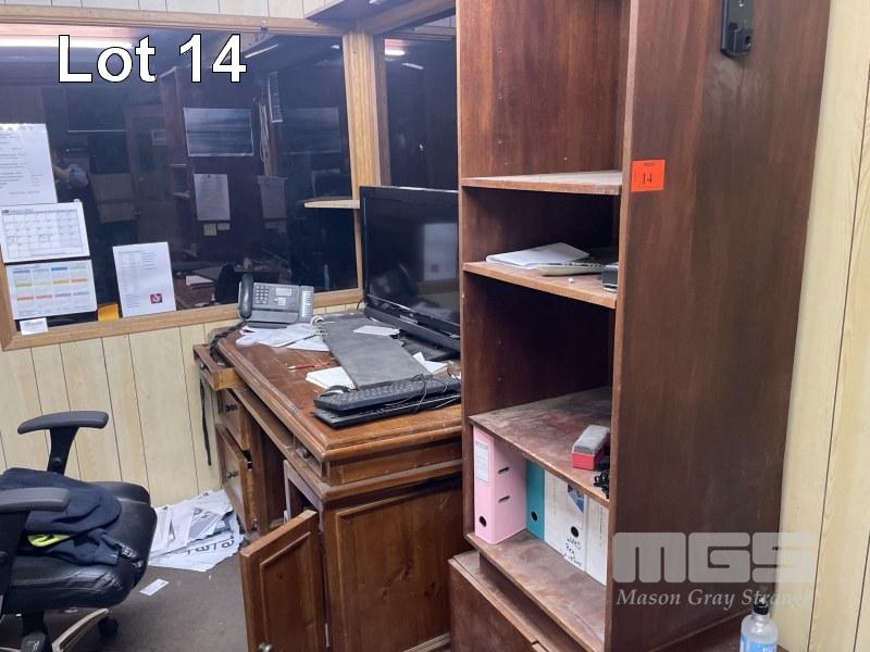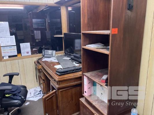 2 x LOUNGE SUITES, PARTNERS DESK, ALL FAULTS, FILING CABINET, WHITEBOARD & AWA 32" TV