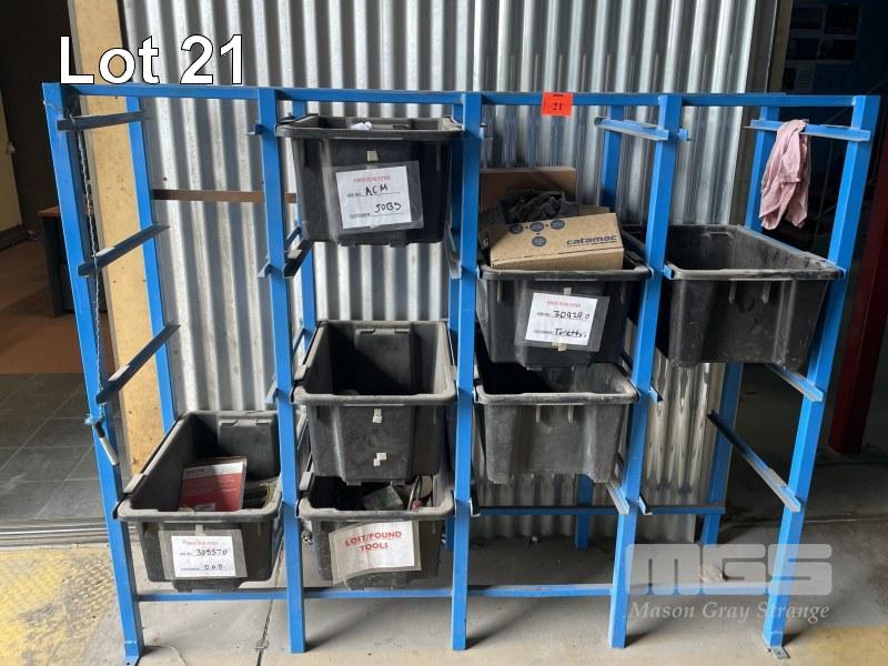 16 BAY STEEL RACK WITH 7 x PVC TUBS