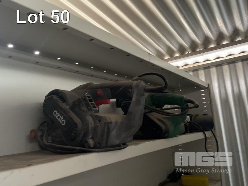 CONTENTS OF LARGE COMPACTUS, 14 BAYS INCLUDING POWER TOOLS, AIR TOOLS, BOLT CUTTERS, PARTS, FASTENERS, ETC, ELECTRICAL CABLE