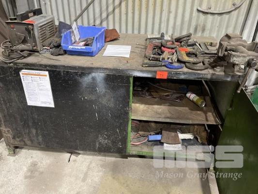 WELDERS BENCH/CABINET, 2 DOOR 1800 x 900mm WITH SWIVEL VICE