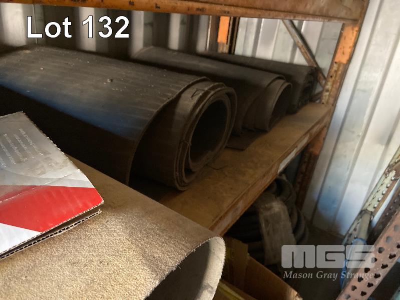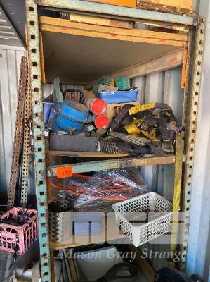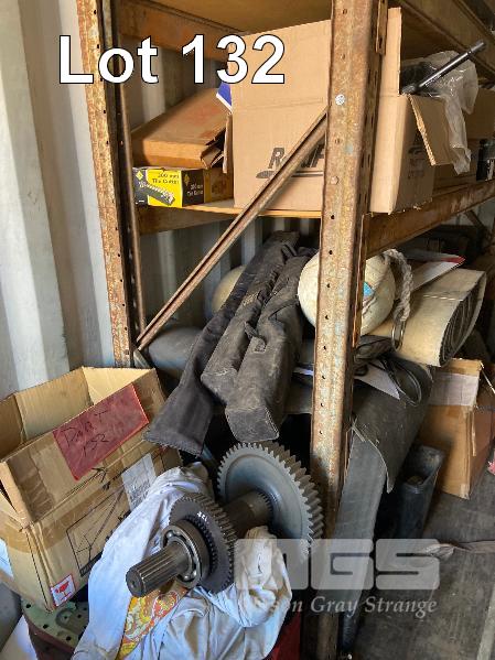 CONTENTS OF 2 RACKS, VARIOUS SPARES, HYDRAULIC HOSE, OFF CUT CONVEYOR BELTING, SMALL HYDRAULIC RAMS, CONTROL BOXES, MIRRORS, SHOCKERS, 2 x SACK TRUCKS