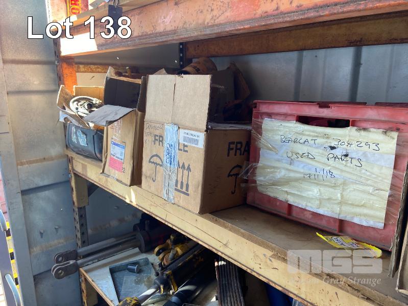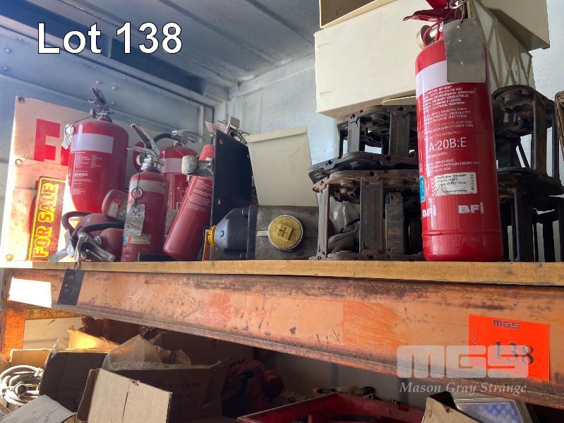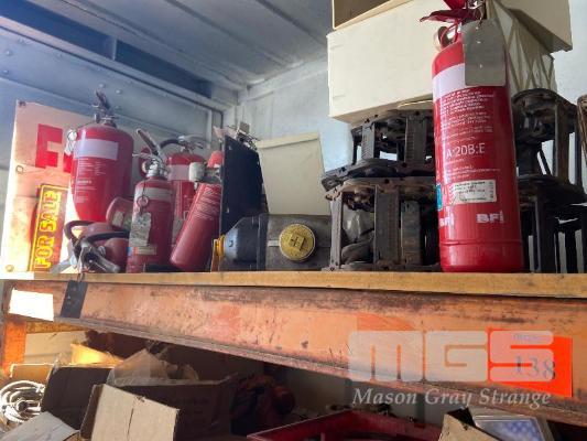 CONTENTS OF 1 BAY, 3 SHELVES & FLOOR, FIRE EXTINGUISHERS, TANKS, RAMS & HYDRAULIC PARTS